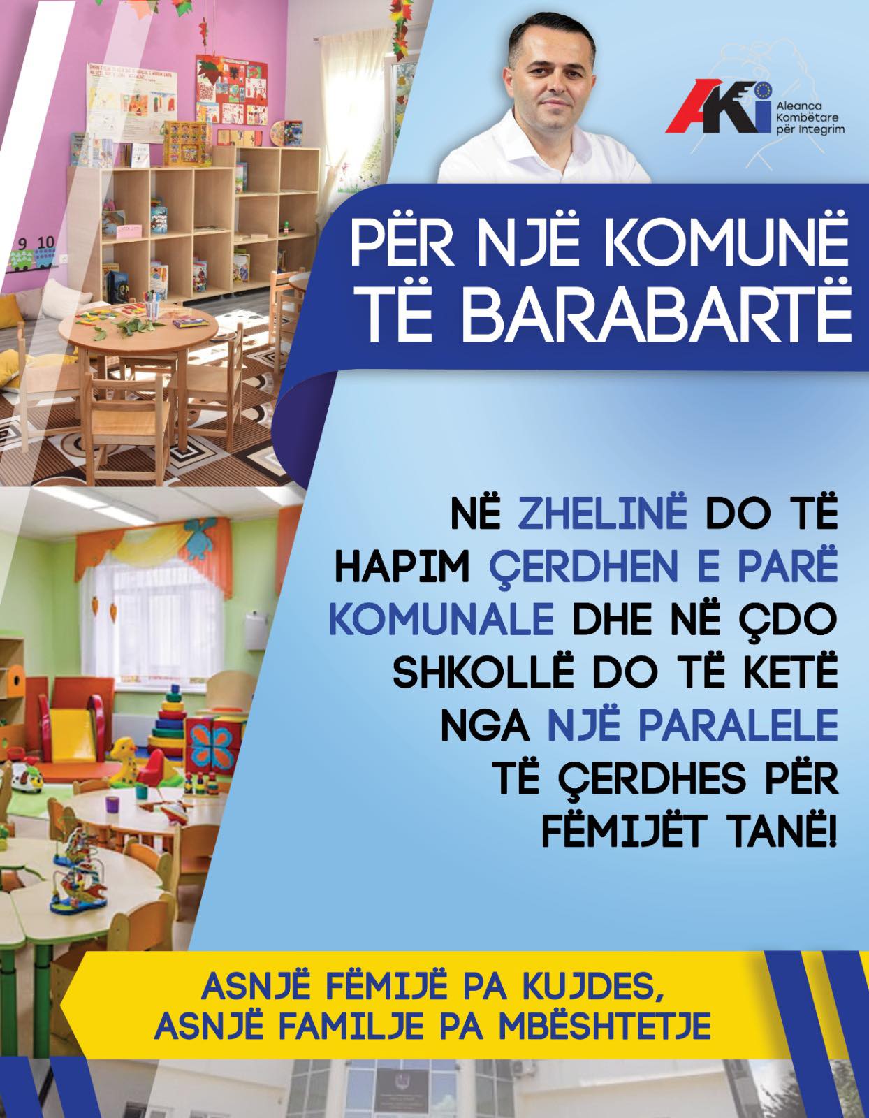 “✅ Me ne, për herë të parë do të hapet çerdhja komunale dhe çdo shkollë do të ketë një paralele çerdheje. Fëmijët tanë meritojnë kujdes, familjet tona meritojnë mbështetje!” – thekson ai.