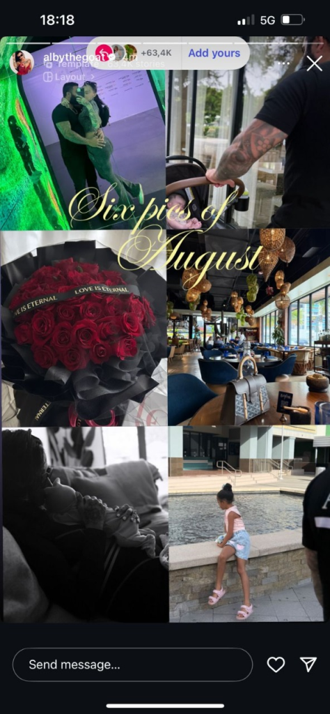 Ky muaj ka qenë veçanërisht i paharrueshëm për të, pasi ka sjellë në jetë fëmijën e saj të dytë – një vajzë. Për herë të parë, Alby ka publikuar imazhe me partnerin dhe vogëlushen e tyre, duke ofruar një pasqyrë intime nga jeta e saj familjare.